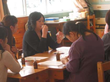 皆さん、たくさんのオイルの中からお気に入りの香りを選び、スプレーを手作りして帰られました。今日は、様々な香りが、子どもたちの帰りを迎えてくれることでしょう。