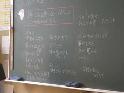 子どもたちは、自分たちの考えは合っていたのか興味津々で、栄養士さんの説明を身を乗り出すようにして、熱心に聴いていました。