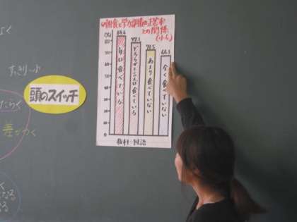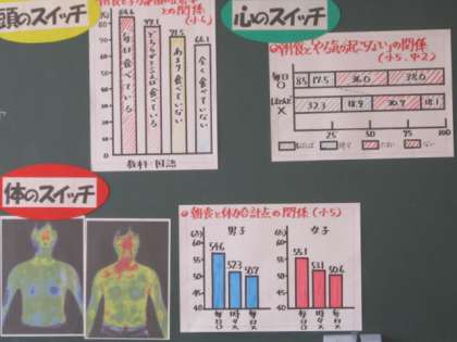 朝ごはんには、子どもたちが考えた通り、「頭のスイッチ」「体のスイッチ」「心のスイッチ」を入れる効果があることが分かりました。調査データや実験結果をもとにして説明してくださったので、子どもたちも納得がいったようでした。