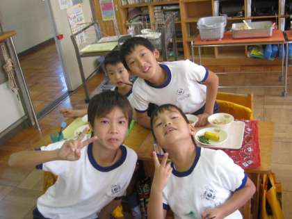 1年生は、ペアのお兄さんお姉さんのことが大好き! 給食の後のペア遊びも、楽しみです。