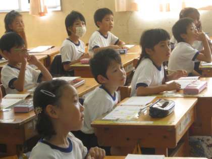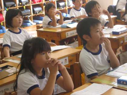 3組さんは、漢字の学習です。先生が、「貝」という字の説明をしてくれました。お金に関係する漢字についているということを聞いて、興味津々の子どもたちです。
