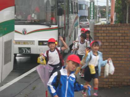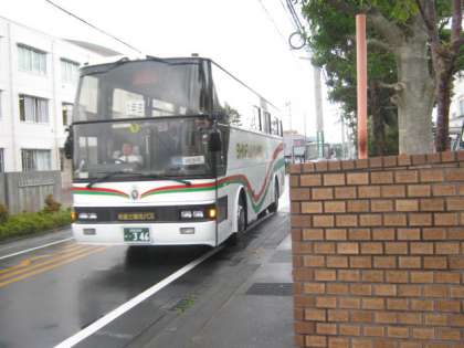 学校前の道路に乗り付け、ご満悦の顔で降りてきました。