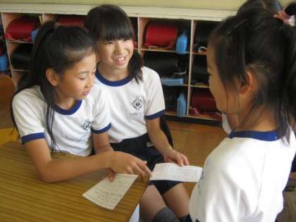 恥ずかしくてもじもじしてしまうのも大好きな6年生が相手だから、そんな1年生を笑顔で迎える6年生です。