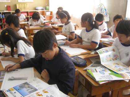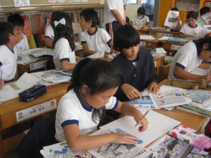 4年生の社会科では、先日の見学をもとに、新聞づくりをしていました。子どもたちは、いただいた資料やインタビューのメモを見ながら、割り付けを考えていました。