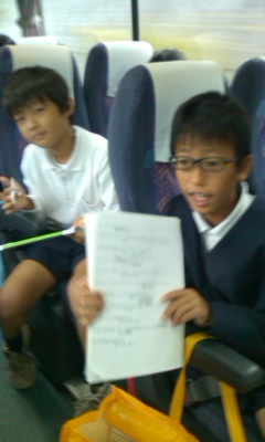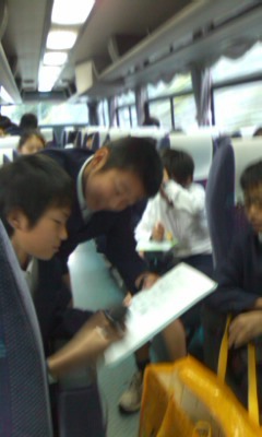 バスの中では“実行委員プレゼンツレクリエーション大会”が始まりました。実行委員はこの日のために緻密な準備をしてきました。そのお陰で車中は賑やか!大盛り上がり!