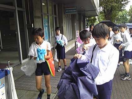 科学技術館に着いたら、突然の大雨。小雨になるのを待って、入館しました。