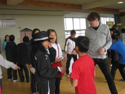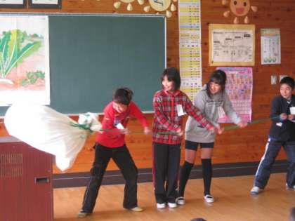 6年生の外国語活動では、「大きなかぶ」の英語劇をしています。これは、昨日披露された、6年3組の劇の様子です。