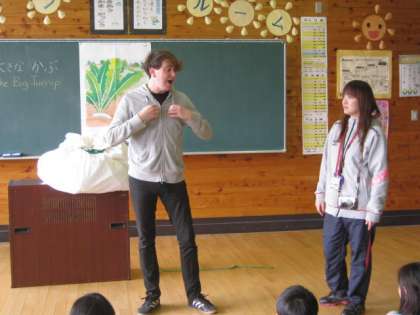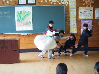 全部の班の発表が終わり、ALTの先生からたくさんのおほめの言葉をいただきました。英語のセリフがはっきりと言えたこと、大きなアクションンと演技力で楽しませてくれたこと、何より、創意工夫ができたことを、ほめてくださいました。