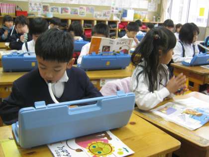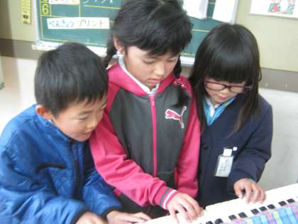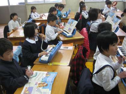 3組さんは、合奏です。今日は、役割を決めたばかりで、初演奏を聴かせてもらいました。