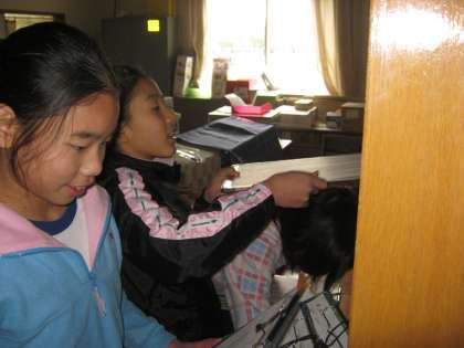 5,6年生の保健委員さんが、中休み時間に仕事をしていました。毎朝各教室から保健室に届く健康観察カードを、各クラスの棚に戻す仕事です。印刷室の隅にある棚に、カードを戻す仕事ですが、このほか、トイレのペーパーの補充など、自分たちの休み時間を、学校全体のために使っています。