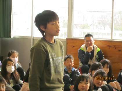 中学校の先生から、「中学校・中学生のイメージはどうですか。」と質問されました。「先輩がこわそう。」「先輩とのつきあいが大変そう。」「部活が大変そう。」など、不安なことが多く発表されました。やはり、期待と不安が入り交じっているようです。
