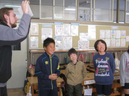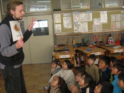 4年生の英語の授業です。「I like 〜.」の文型に慣れるため、食べ物で自分の好みを伝える学習をしていました。先生がエネルギッシュで楽しい方なので、子どもたちも自然とのりのりになります。元気いっぱいに英語を楽しみ、先生の後について発音することにも喜々として取り組んでいました。
