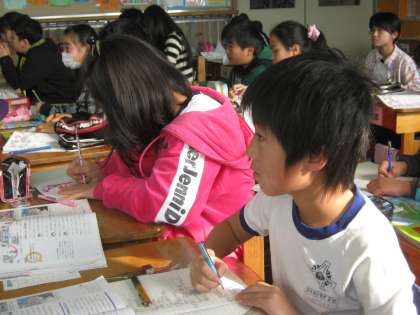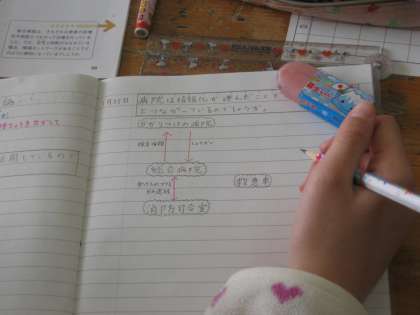 5年生の学習風景です。今日は、社会科で、情報化と病院の仕事の関係を学習していました。ノートの取り方の美しいこと! こういうノートの書き方をすると、きっと、頭の中も整理されますね。