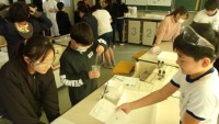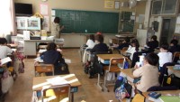 学校からの距離によって集合時刻が違いますが、学校に近づくと、こんな具合に混み始めます。校庭南の信号では、右左折車両に待っていただくことになりご迷惑をおかけしますが、安全教育の一環としてご理解いただければと思います。信号付近の安全については、学校でも重ねて指導します。