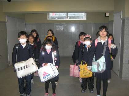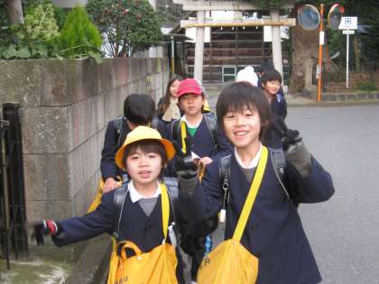 途中、八幡神社が集合場所になっている班も一緒になって、登校しました。