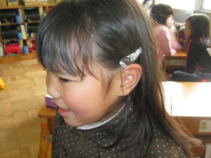 下:お母さんに教わって、手作りしたヘアピンです。すてき1