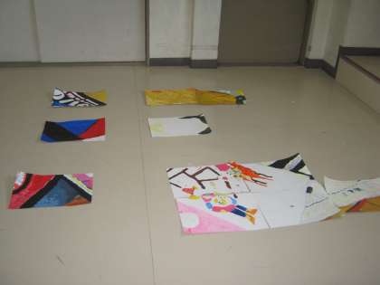 一人一人が作ったパーツをつなぎ合わせていくと、1枚の大きな絵になるのですが…、まだ、これでは、何の絵なんだかわかりませんね。
