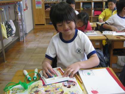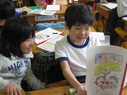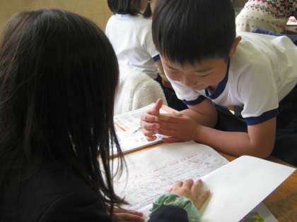 1年生がこれまで書きためてきた日記が、一人一人、1冊の「思い出日記」にまとまりました。今日は、表紙の絵に色を塗って仕上げました。読み返す子どもたちの表情は、なんとも嬉しそう。最初の日記を読んで、「弟が三島大社の池に落ちちゃったんだよ。」と、教えてくれました。