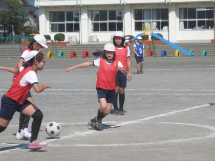 女子も、なかなかのもの。ボールを追って走る姿が、かっこいいでしょう。