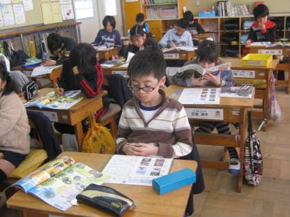 4年生の理科では、ワークシートを使って、自然の四季をまとめていました。学習したことを1年の中に位置づけるのですが、総合的に考えなくてはいけません。でも、カエルの卵やカブトムシの幼虫の写真が出てくると、ついつい面白くなってきちゃうんですよね。