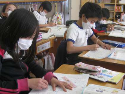3年生の国語では、ちょっと難しい言い回しの意味を考えていました。たとえば、「〜に暗い。」=明りが暗いわけではなくて、そのことに詳しくないという意味。難しいですね。