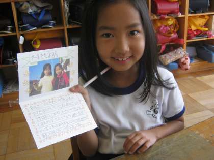 お隣では、ペアの4年生にお手紙を書いていました。「ありがとう。」「楽しかったよ。」といった言葉に混じって、「大好き!」と書いている子もいました。4年生、喜びますね。
