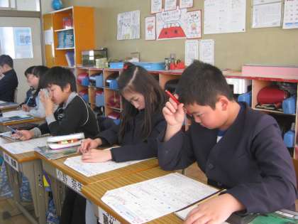5年生が、理科「振子」のテストを直していました。実験ではあんなに晴れやかな顔だったのに、今日は気のせいか(テストの結果のせいか?)表情が浮かないような…。