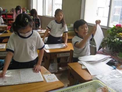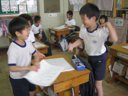 国語に関する学習物、作文や日記、ことわざカードなどをファイルにまとめていました。ずっと前に書いた作文に友だちの名前を見つけたら、やっぱり報告したくなっちゃいますね。書いた方も登場した方も、ちょっと照れくさい?