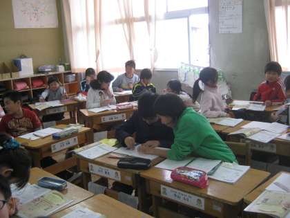 4年生が、算数のまとめに取り組んでいました。余裕の笑顔は時間内にできた証拠ですね。