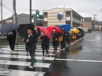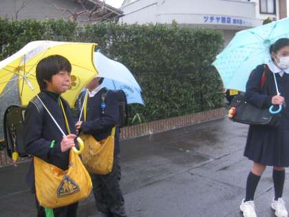 集合場所に一番乗りした4年生。後から来る子たち一人一人に「おはよう。」と、声をかけていました。この班は多くの子が互いにあいさつを交わしていて、朝から清々しい気分になりました。