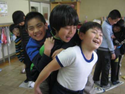 体をくっつけ合うゲームで、心と肌のぬくもりが伝わりました。