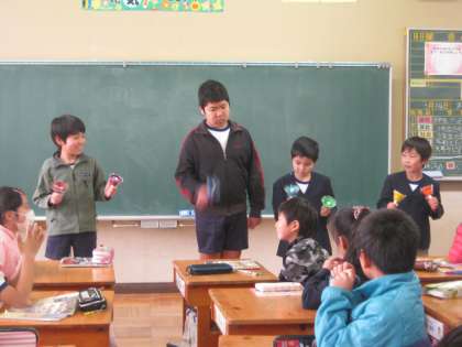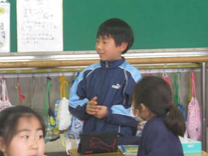 いずみの子どもたちが、交流学級へ行って、ハンドベルの新曲を披露しました。交流の楽しさに対して、「大きな古時計」の演奏で感謝の気持ちを伝えようという活動です。3年生のクラスでは、演奏と先生に渡された手編みの座布団の見事さに、拍手が沸き起こりました。また、3年生から、1年間ともに学習したことへの感想やお礼の言葉が返されました。