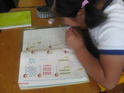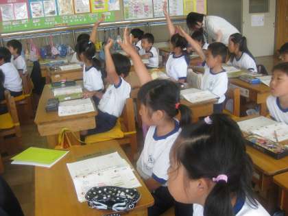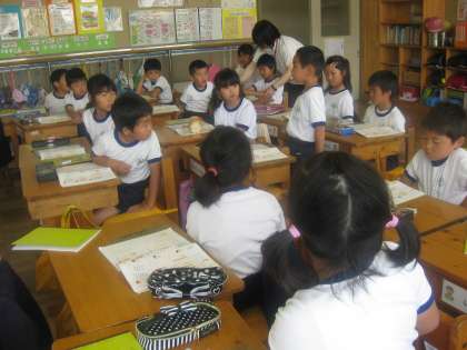 2年生は2けたの引き算について、十の位ごと、一の位ごとにわけて考えていました。発表する人の方にしっかりと体を向けて聞いています。