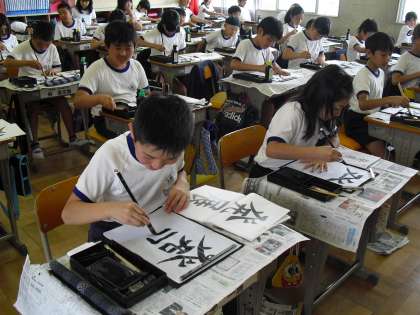 6年生の書写は学年内で指導する学級を変えて指導しています。1組では試し書きをして自分の目標を決めていました。