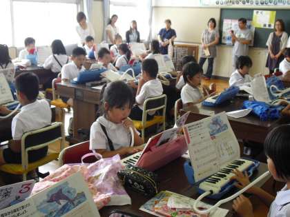 3年生は1,2組が音楽、3組は理科でした。1組は旋律作り、2組は自分で作った旋律を鍵盤ハーモニカで発表しました。3組は昆虫の体のつくりはどうなっているかを確認して理解を深めました。