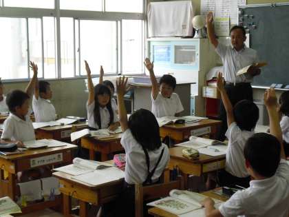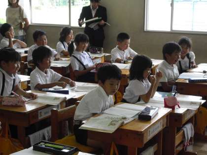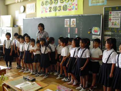 2年生は3クラスとも国語でした。主語、述語を使った文作りを教科書の絵を見ながら考えています。同じだ、まだある、とつぶやく姿に、張り切っているのが分かりました。