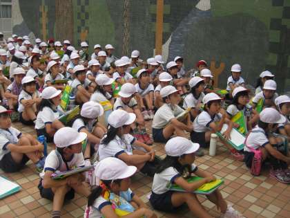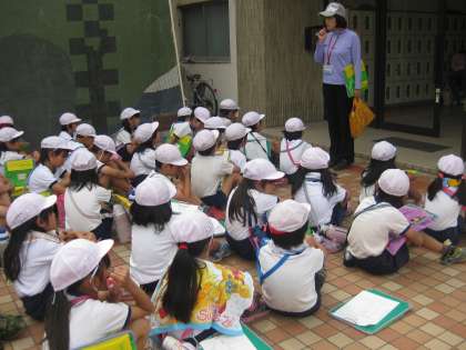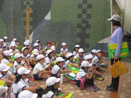 朝8時30分に3年生が最後の校区探検に全員揃って出かけました。出発前の主任の先生のお話もしっかりと聞いています。気をつけていってらっしゃい。