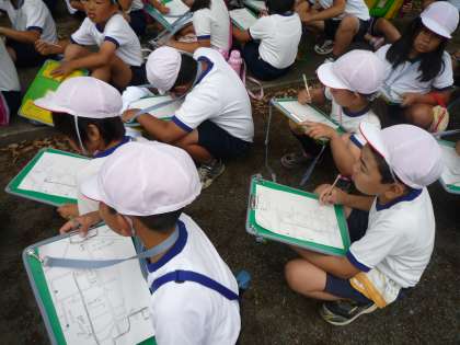 3年生の校区探検は、役場や消防署、交番等まで行きかなり疲れましたが、とても歩き方も上手になり、すばらしい探検になりました。