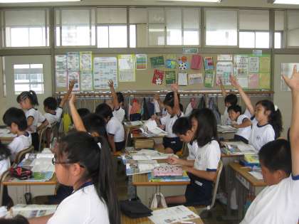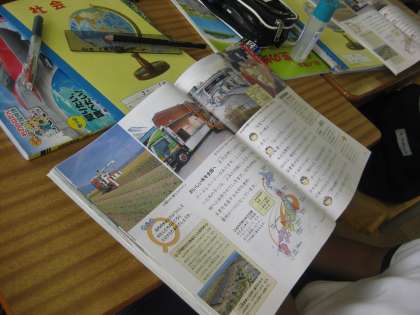 5年生のクラスでは庄内平野のお米がどのような輸送経路をたどって消費者のところまで運ばれてくるのか、プリントを使ってまとめを行っていました。お米を運ぶトラック(カントリーエレベーター)があることについても学んでいました。