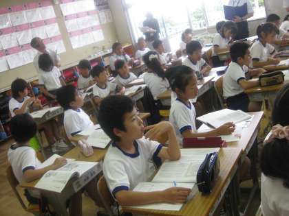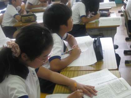 5年生の授業です。資料「おばあさんの心」を使って尊敬・感謝の学習です。