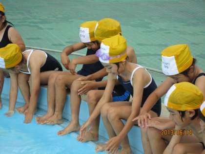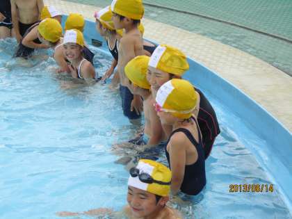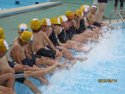 早くどぼんと入りたい気持ちをおさえて、少しずつ体に水をかけ、水に慣らしていきます。