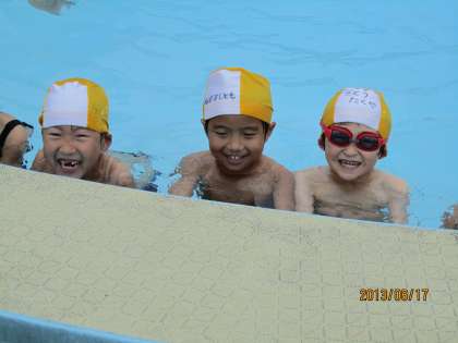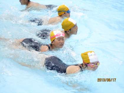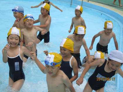 今年度初めてということもあり、水慣れにたっぷりと時間をかけています。これからは、全員が卒業までに25メートル泳ぐことができるように、水泳授業を進めていきます。