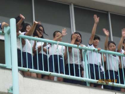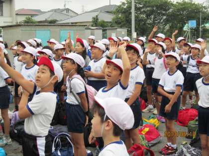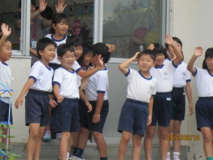 5年生の「行ってきまーす。」に、2年生と6年生が手を振ってこたえてくれました。「行ってらっしゃーい。」あたたかな風景が広がります。