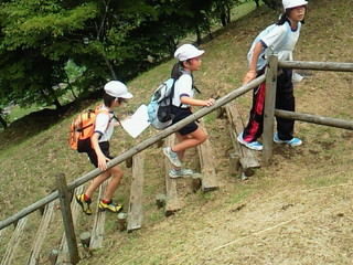 急坂もありたいへんですが、協力して頑張っています。
