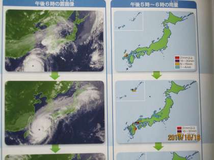 なんというタイミングでしょう。台風一過の今日は、「台風」についての学習です。今朝までの台風の動きをテレビや新聞等で知っているからでしょう、南からやってくるとということや大雨や強風を伴うことをすぐに理解できたようです。