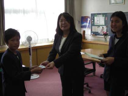 6年生が修学旅行のしおりを渡すために、校長室にやってきました。修学旅行は来週の火曜日・水曜日です。すでに準備万端のようです。素敵な思い出を持ち帰ってくださいね。