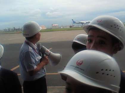 飛行機が離陸するようすを見ながら、いろいろ説明していただきました。