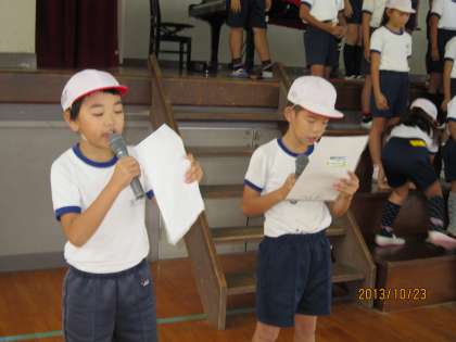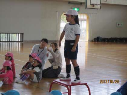 西幼稚園と中央保育所の年中さんを招いて、幼保小交流会が開かれました。企画・進行は3年生です。まずは、あいさつの後、歌のプレゼントです。「ミッキーマウスマーチ」をリコーダーで演奏しました。年中さんから、「上手!」と拍手を送られました。