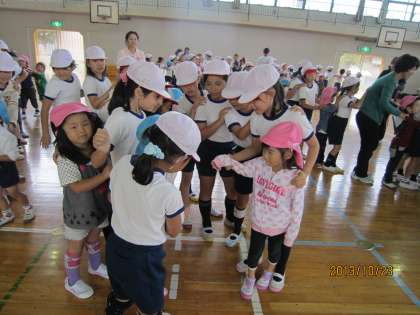 次はゲームです。「猛獣狩りに行こうよ」と「貨物列車」を行いました。はじめは声をかけるのも恥ずかしそうにしていましたが、始まるとお互いに緊張感も解け、和やかにゲームをすることができました。