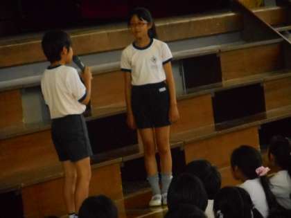 児童集会 あいさつ世界一の取組 3